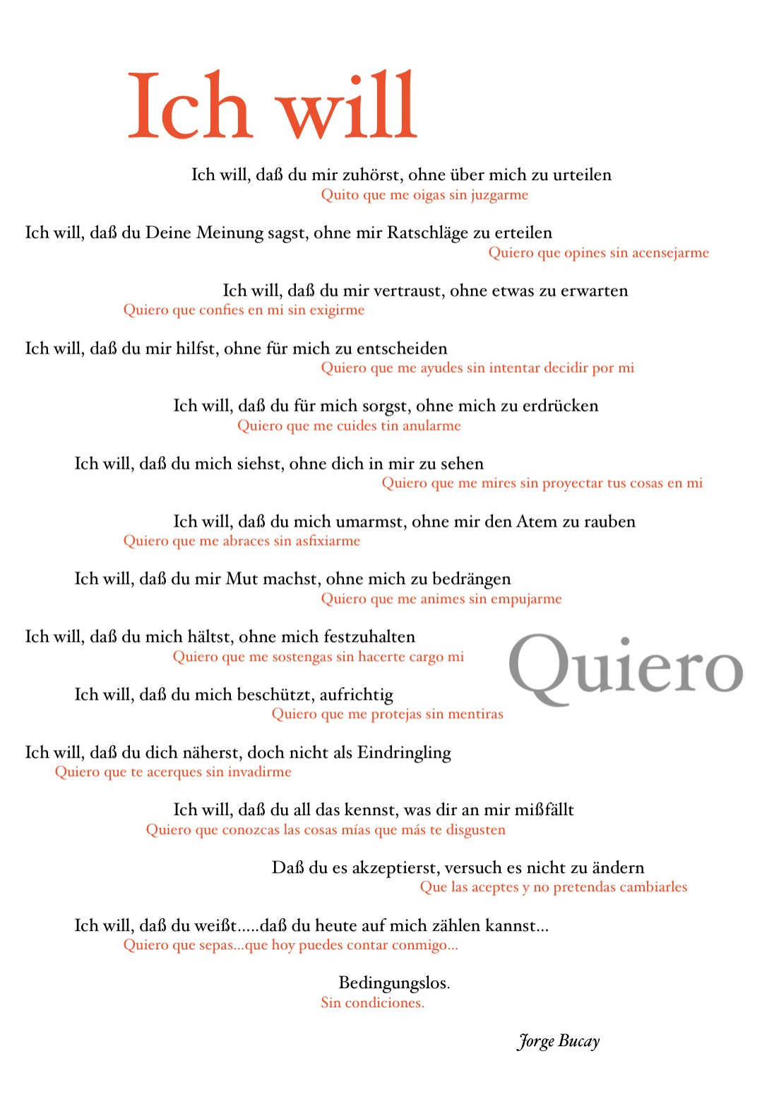 Ich will - Quiero - von Jorge Bucay.
